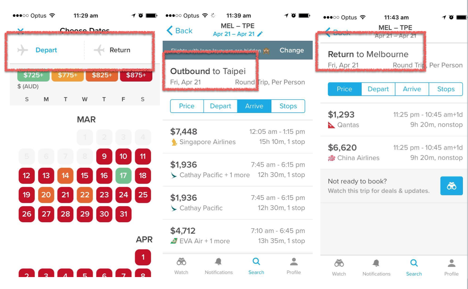 - Remove the Watch function in this instance to encourage users to book the flight now